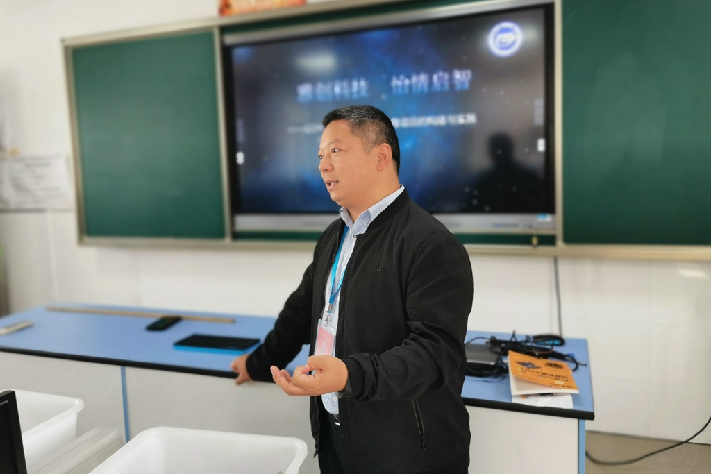 杨小春副校长在“江苏省青少年特色科学工作室”STEAM工作坊,为学员们介绍学校的科创教育,大家饶有兴致地进行了实践操作。