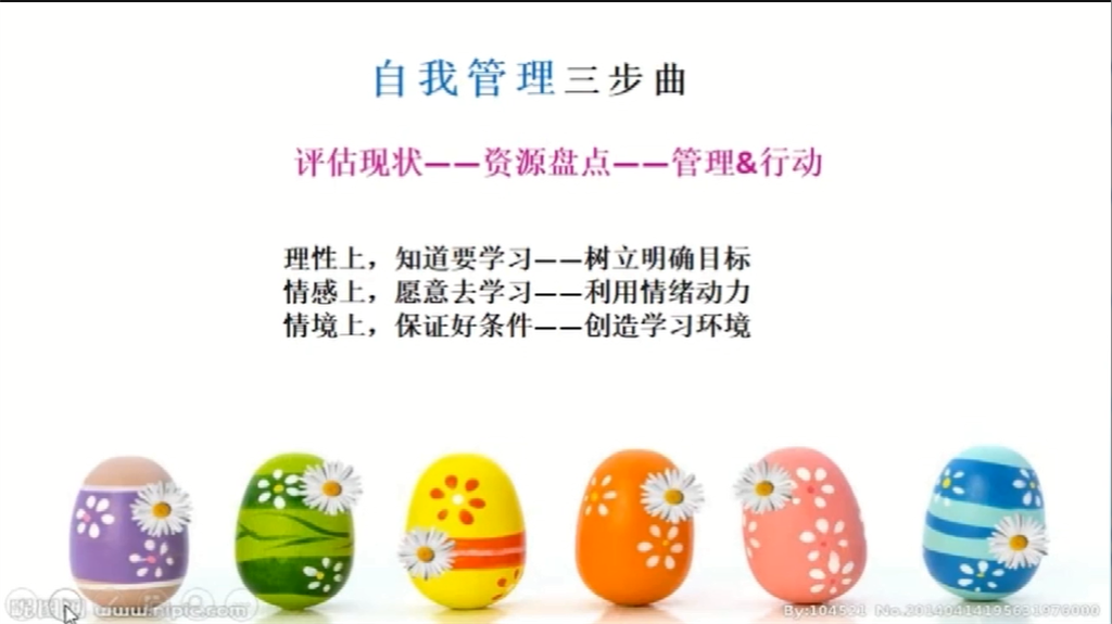 总之,在理性上,我们要树立明确目标,知道要学习;在情感上,我们要利用情绪动力,愿意去学习;在情境上,我们要创造学习环境,保证好条件。