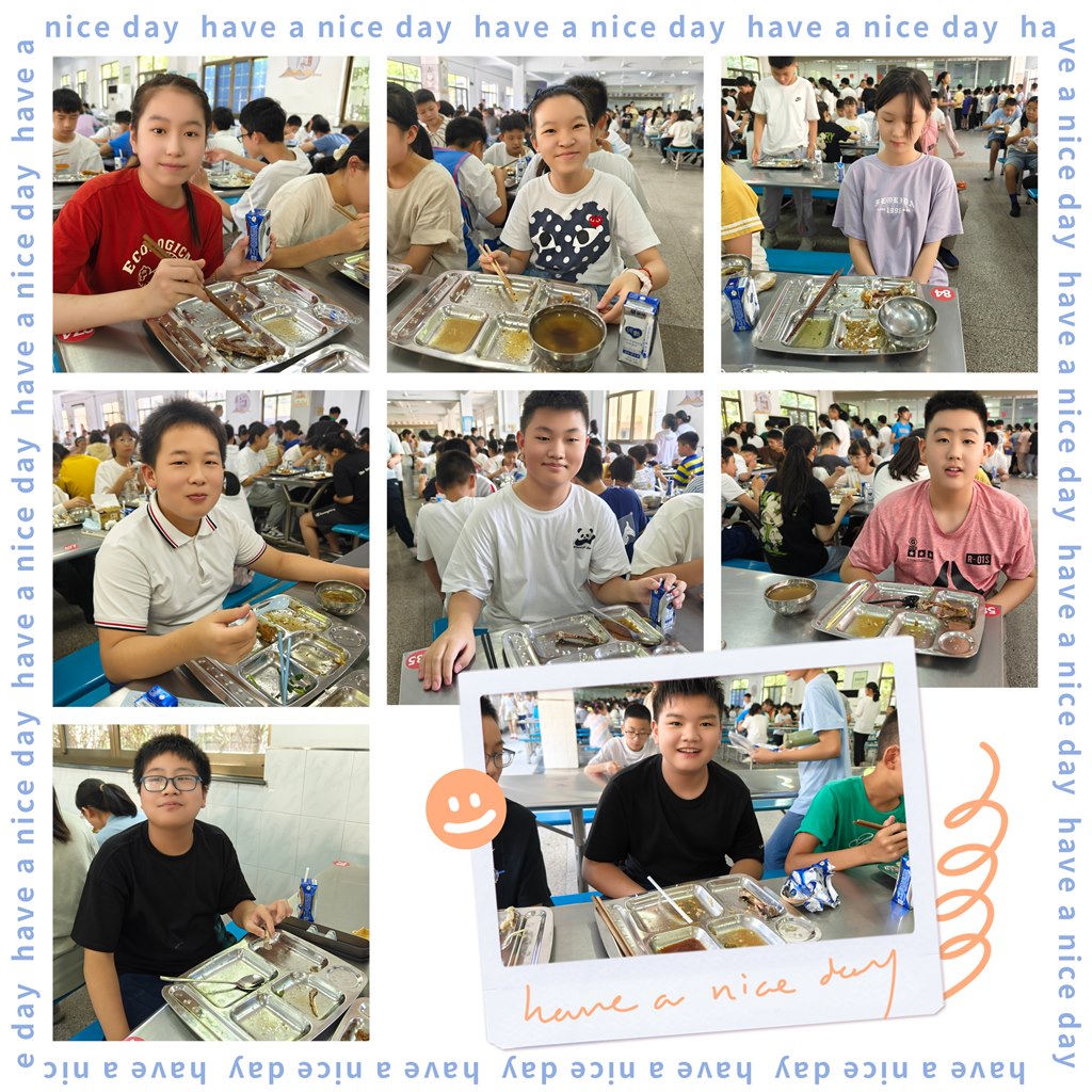学校的午餐品种丰富多样,营养搭配均衡。同学们有序地排队在窗口领取了荤菜,根据个人食量自助打取蔬菜和米饭。夏令营第一天,食堂还贴心准备了消暑的绿豆汤和酸奶,同学们吃得津津有味,光盘行动,启动!