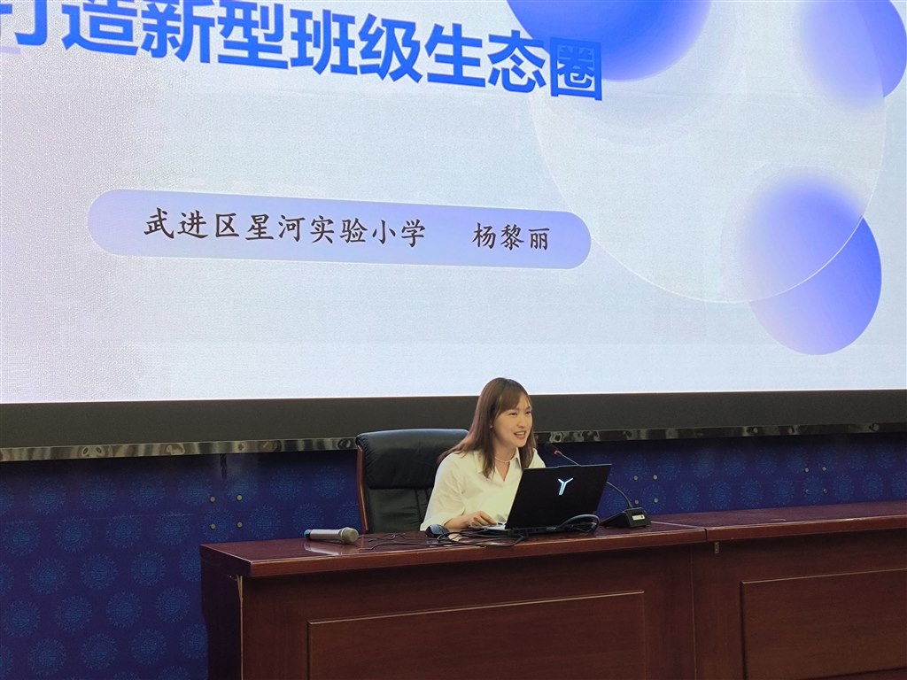 杨黎丽老师做题为《AI赋能班级管理:打造新型班级生态圈》的讲座,杨老师探讨了AI赋能班级管理的新路径,提出教师角色应向学习设计师、情感智慧导师等转变,利用AI技术优化考勤、排班、通知等事务,促进跨学科学习,设计智能花园,构建学生成长画像,并加强家校合作,打造新型班级生态圈。