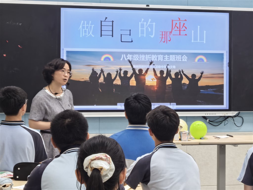 焦老师的主题班会《做自己的那座山》,以理性思考和创意活动助力学生认知升级。班会伊始,以韩国知名影星宋慧乔的一则采访视频引入,借用《皮囊》中的一句话拉开帷幕,引导学生思考如何面对挫折,做自己的山。接着,焦老师用“胡萝卜、鸡蛋、咖啡豆”等实验,直观展示面对挫折时的不同态度与结果,引发学生深度思考。随后,焦老师用“添笔画”创意活动和摩西奶奶的故事,与时俱进引入最近热火的苏超联赛,引导学生转换心态、重塑认知,提升心里韧劲。