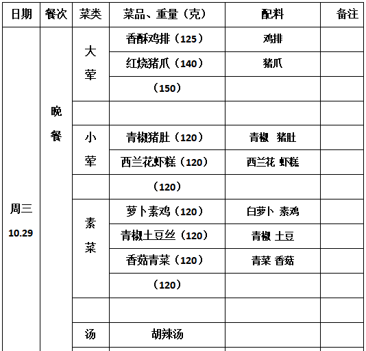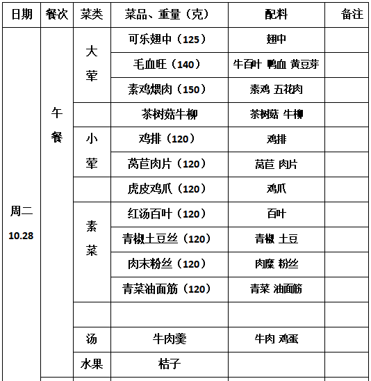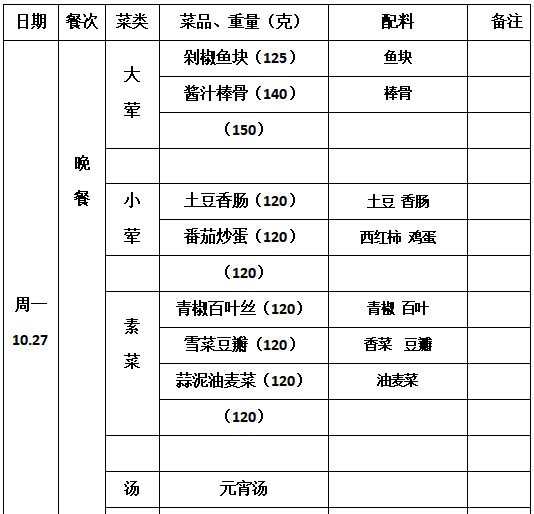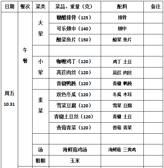 2025—2026学年第一学期第9周学生菜单