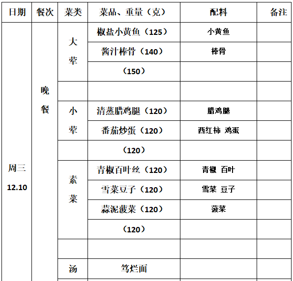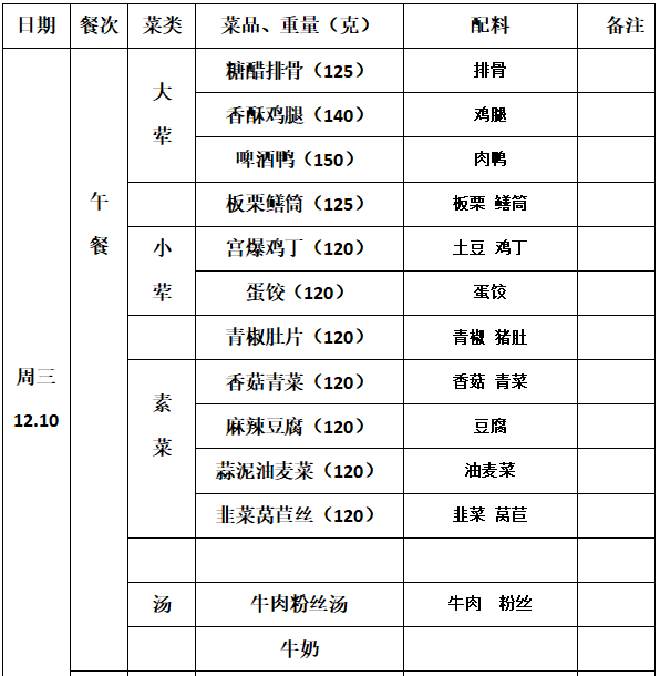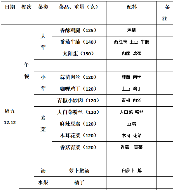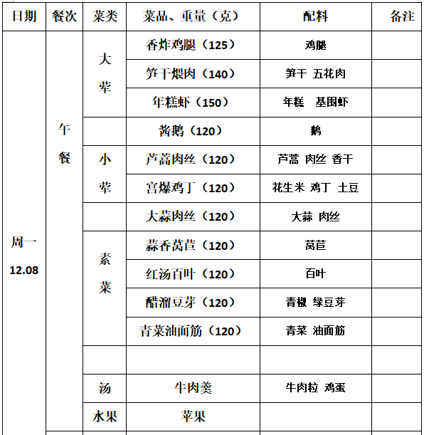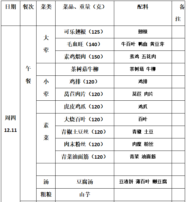 2025—2026学年第一学期第15周学生菜单