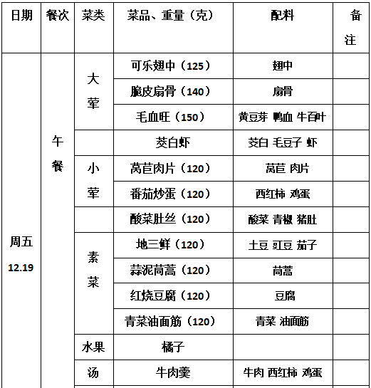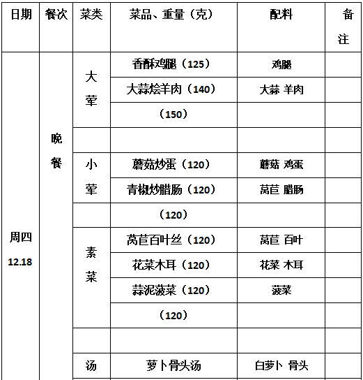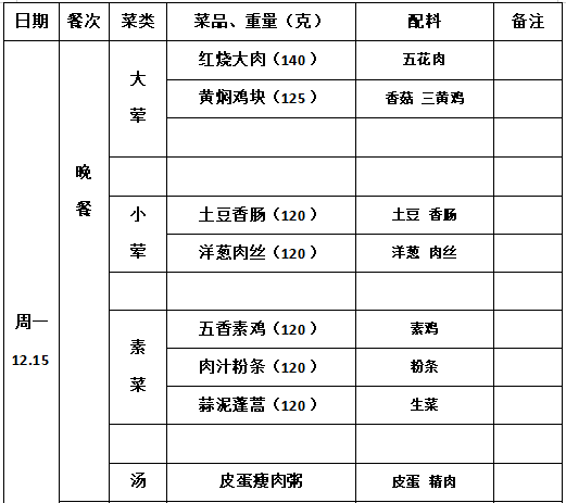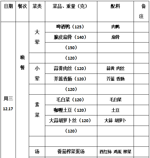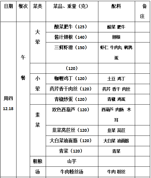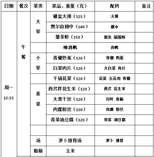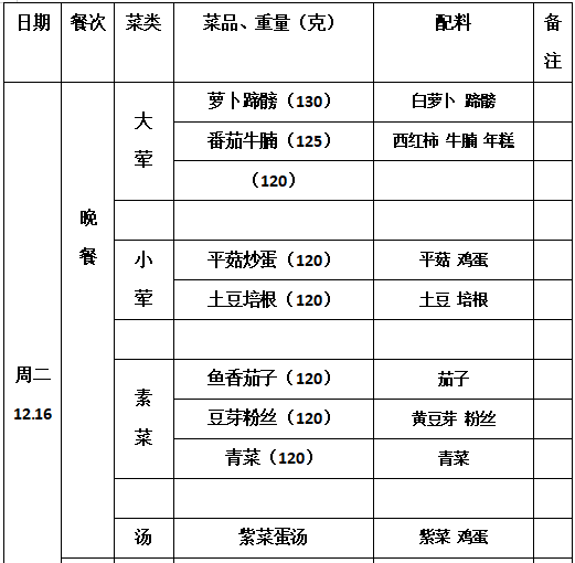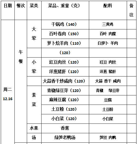 2025—2026学年第一学期第16周学生菜单