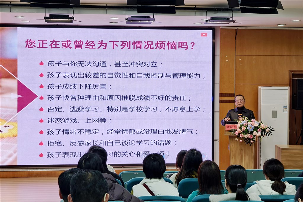 为帮助各年级家长读懂青春期孩子的心理密码,用科学方法化解亲子冲突,常州市第二十四中学特别推出《赋能成长型家庭——用积极心理学构建青春期亲子同盟》专题父母讲堂。12月19日,学校特邀资深专家江苏理工学院硕士生导师、常州市家庭教育研究院副院长方翰青教授主讲,带领迷茫中的家长跳出家庭教育的误区,用积极心理学的智慧,搭建亲子间的“心灵桥梁”。