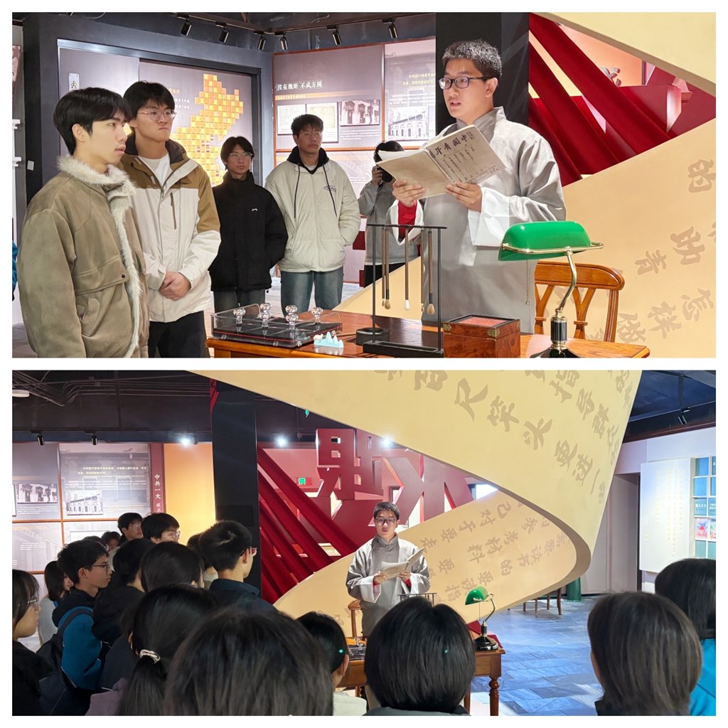 在“一次沉浸式体验”里,三校新团员随讲解员走进张太雷纪念馆,在史料与讲解中触摸红色历史,感悟先辈革命精神。我校卢锦程同学化身恽代英,生动演绎青年先锋的热血风貌。
