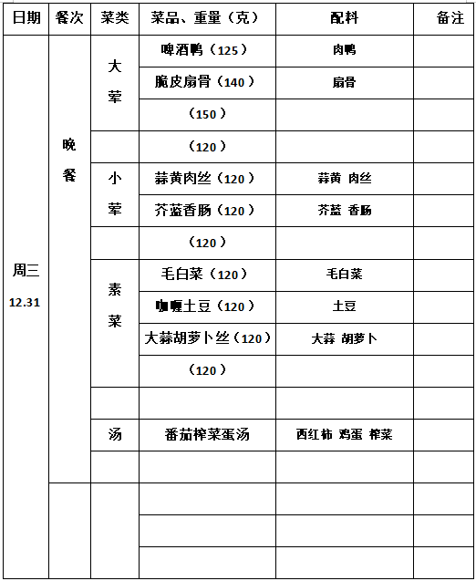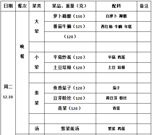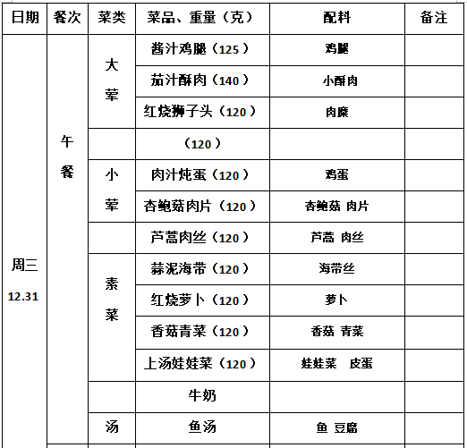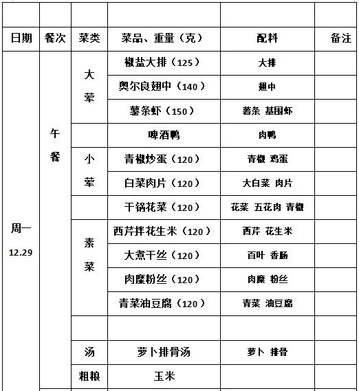 2025—2026学年第一学期第18周学生菜单