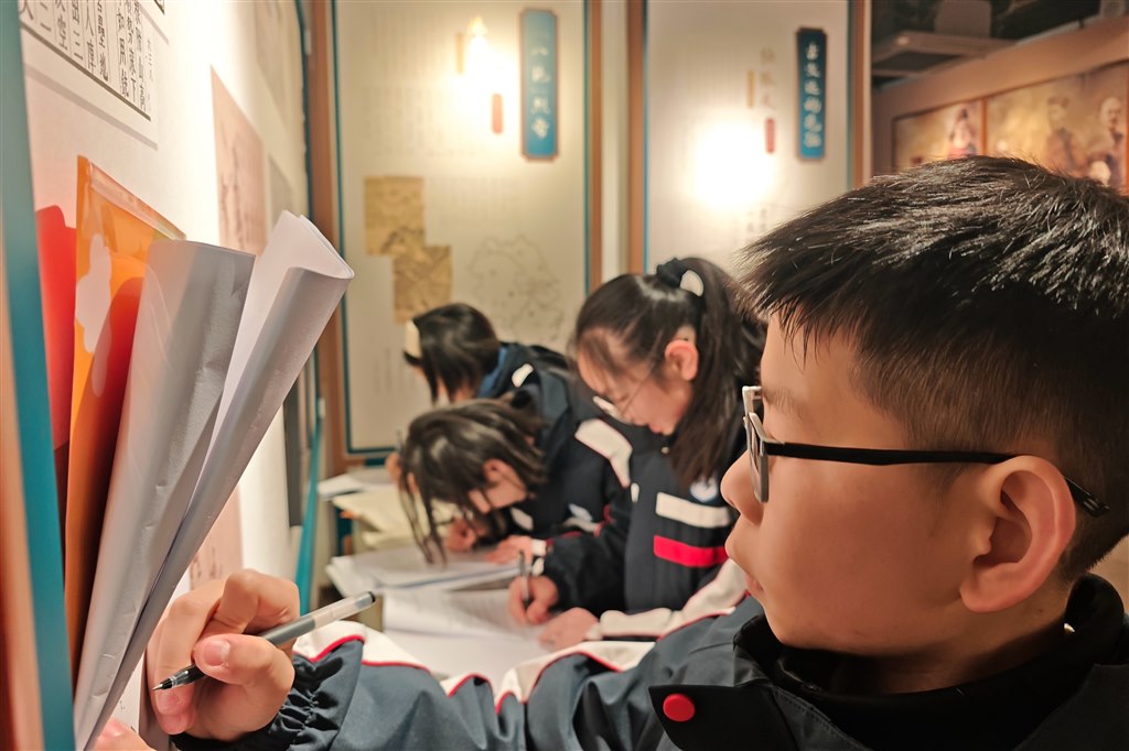 接着来到馆内,馆内丰富的展陈、厚重的历史底蕴让同学们驻足流连。在景老师的悉心指导下,同学们亲手绘制记忆馆平面图,在落笔勾勒的过程中,不仅清晰掌握了场馆各展厅的布局与核心章节内容,更在自主探索中加深了对展品背后文化故事的理解。“看着自己绘制的平面图,能清晰说出每个展区的亮点,这种成就感特别强烈。”一位同学的分享道出了大家的心声。