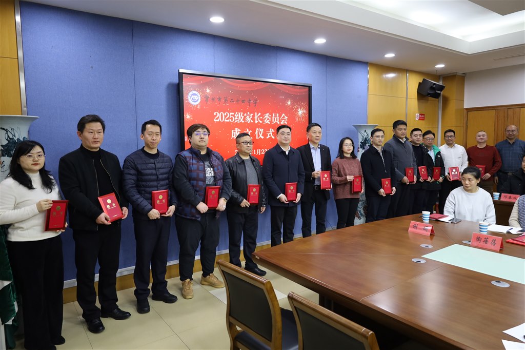 为进一步推进家校协同育人体系建设,构筑顺畅互通的家校交流渠道,共同护航学生全面发展,1月26日下午,二十四中2025级家长委员会成立仪式于学校会议室举行,校领导、行政团队及家委会全体成员齐聚一堂,共同见证这一重要时刻。