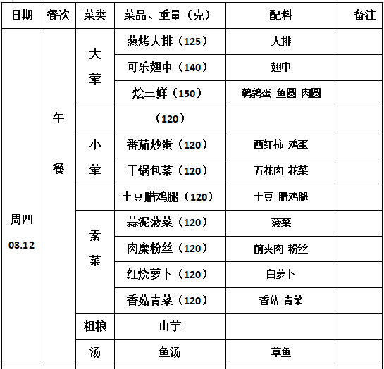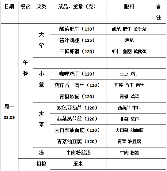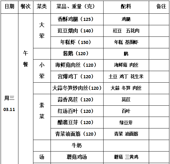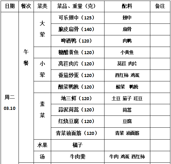 2025—2026学年第二学期第2周学生菜单