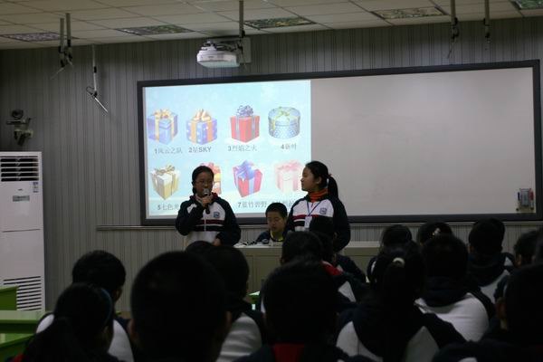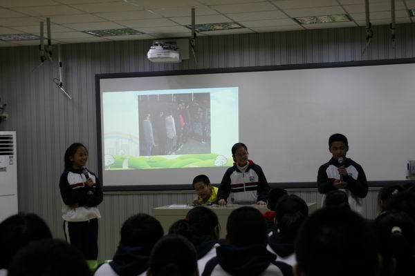 在落落大方的主持人的开场白后,“风云之队”满怀自信地登上了讲台,抑扬顿挫的讲述,为我们翻开了一本生动的故事书。教导我们礼让,尊重和文明。