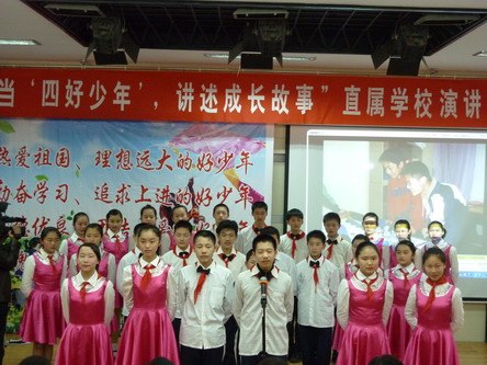 3月30日,在常州市直属学校“争当‘四好少年’,讲述成长故事”演讲比赛中,常州市第二十四中表演的音诗画《少年强》气势浩大,震撼人心,获得了特等奖。