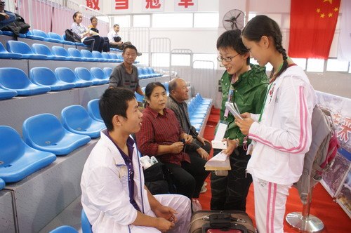 小记者们第一次触及这样的大型比赛,一开始有些腼腆,席上的观众非常热情,纷纷鼓励他们去采访。比赛越来越精彩,小记者的胆子也越来越大,他们有的直接采访运动员,感受到成功“一举”之后凝聚了多少汗水与心血;有的被运动员“后援团”的热情感染了,小记者徐晨、陈新采访了冠军的妈妈,体会到了亲人的支持是运动员成功的保障;有的被穿着莹蓝色制服的志愿者们所吸引,志愿者们的一句“很累,但是我们很充实。”让小记者们感动不已……采访之后,小记者们当晚都写下了篇篇激动人心的采访稿。