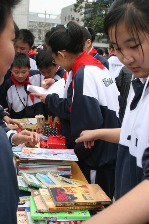 2010年11月16日下午,常州市第二十四中学第二十四届“美在身边”文化艺术节系列活动之一—— “跳蚤”市场在学校操场隆重举行。一张张课桌拼成的柜台上摆放着各个班的同学从家中“淘”出的精美物品,有各类学习用品、书籍、工艺品等。各班代表在桌子边伸长了脖子大声吆喝着,努力向前来驻足的同学们推销自己班的物品。一声声响亮的叫卖,一阵阵满意的笑声,一个个精美的物品,一张张灿烂的笑脸,构成了一次精彩纷呈的义卖活动。冬风萧瑟,落叶飘零,可在同学们拳拳爱心的感染下那风儿也吹出了阵阵暖意。此次“跳蚤”市场的收入为各班艺术节活动筹集了资金,也增进了学生团队合作意识。(周小燕 赵佳)