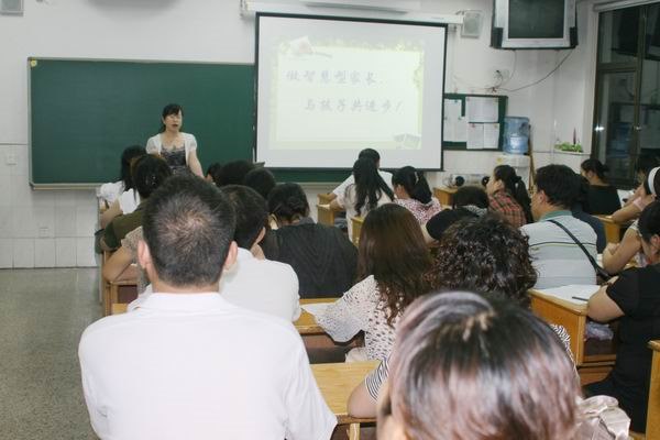 6点30分,会议开始,分两阶段进行。首先由李剑波主任主持,殷涛副校长主讲。殷校长代表学校作了激情洋溢地发言,他先实事求是地汇报了我校2011年中考成绩;具体细致地展望了2012年的中考前景;全面冷静地分析了本届学生现状;从不同角度,因势利导,语重心长地给家长提出了“四个一”的教育建议。家长们的佩服,赞叹、信心都写在了他们的脸上!在殷校长高屋建瓴的发言之后,学校还请来了上届优秀学生家长丁云翔的妈妈跟各位家长做了真实平等的交流,丁妈妈从关注孩子、立足家庭、联合学校等多方面给家长们展示了自己的许多教育细节、教育智慧和教育心得,从家长们陶醉的眼神,不住的微笑中,我们知道,今年家长会的这个新举措成功了。