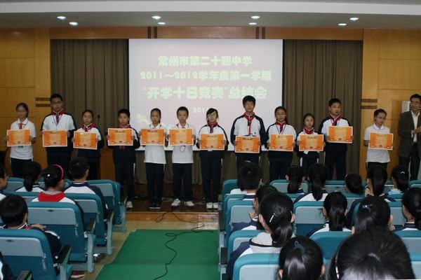 金秋九月,一个崭新的开始。常州市第二十四中学的莘莘学子们又回到了美丽的校园,站在了新学期的起跑线上。为了让大家能赢在起跑线上,学校又一次开展了“十日竞赛”活动。9月21日,“十日竞赛”总结会在学校蓝厅隆重召开。
