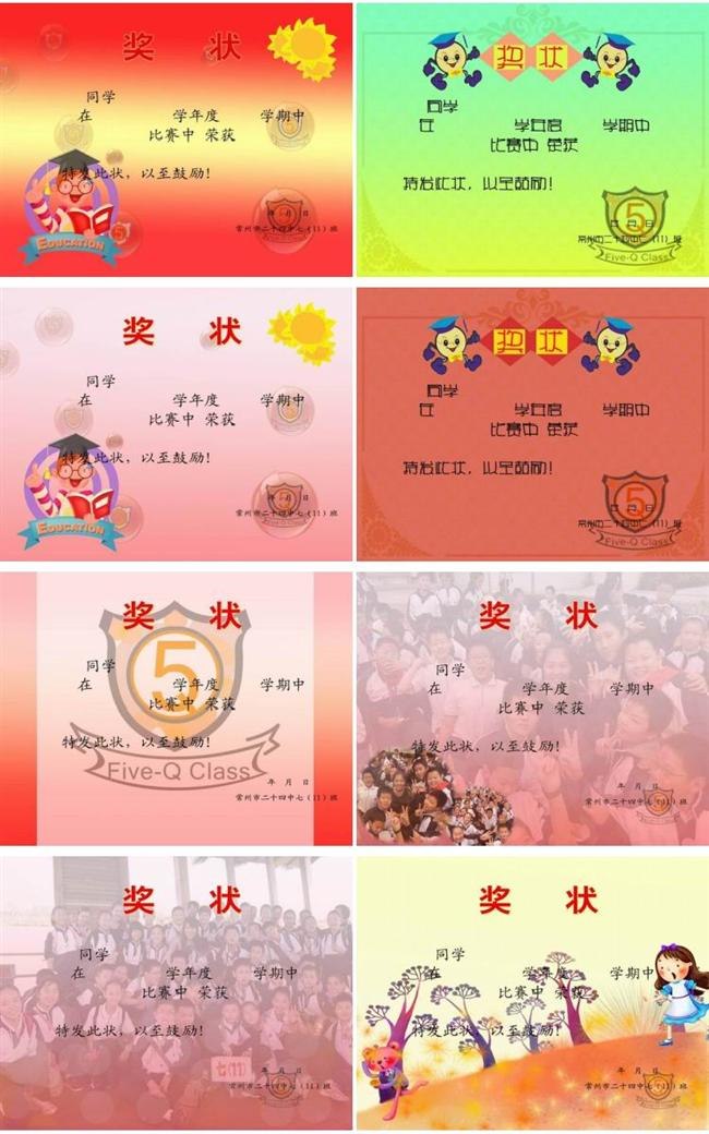 健康阳光奖、道德风尚奖、关心集体奖、心胸开阔奖、助人为乐奖、劳动积极奖、学习勤奋奖、聪慧助手奖。