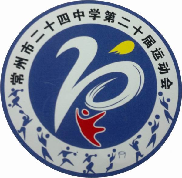 本届节徽是由一个圆环组成,主要运用了三原色:红、黄、蓝。中间的圆内,是一个潇洒而飘逸的“20”,小圆的底色为水蓝色,白色的“20”字样在这水蓝色的映衬下,显得格外醒目、耀眼,点明了这是第二十届运动会;水蓝色则显得更加沉稳、庄重,象征着运动员们能怀着一种冷静的心态去面对自身的挑战,这也是节徽的主打色。“20”的下面是一个活泼的小人,它使整个画面充盈着一种生机勃勃、昂扬向上的进取精神,也激励着参赛选手能在赛场中一展风采,为班级争得荣誉;“20”的右上方是一个金黄色的点子形,给这幅作品增添了几分明亮轻快的色彩,寓意着运动员们是凭借一种快乐的心情去迎接比赛。圆环以白色为底色,上半部分是“常州市第二十四中学 第二十届运动会”这几个黑体大字,下半部分是近十个小人在做各种各样的体育活动,有的小人双脚滕地,做着投篮的姿势,双手将球举过头顶,准备随时投出一道漂亮的弧线;有的小人在踢足球,他牢牢掌控着足球,随时准备着给对方来一个措手不及;有的小人挥舞着羽毛拍,身体微微倾斜,随时准备接球……这些充满活力的小人生动地展现出运动员们矫健的身姿,同时也是希望这次运动会能举办的十全十美,为二十四中的历史篇章书写灿烂的一笔。