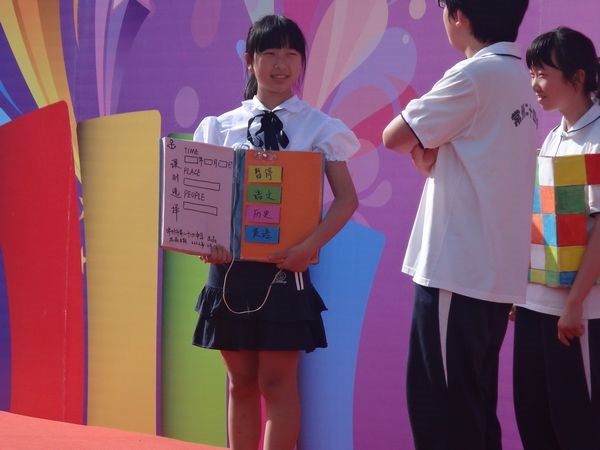 而七(6)和七(11)班联合表演的话剧则是讲述了一个现代的男孩坐时光机去了未来,并看到了一系列的科技产品的故事。生动的情节,精心的编排,凝聚了同学们心血的背景和服装以及有模有样的表演无疑是这个作品一夺金冠的原因。