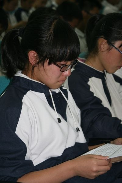 而后,八(10)班朱正桓妈妈的发言,诉出了家长们的心声,表达了父母对孩子们深深的关爱与期盼。每位同学都收到了父母的来信,带着些许期待,拆开信封,教室里静静的,只有背景音乐轻轻的回响。眼圈红了,号称已长大的孩子泪珠慢慢润湿了信纸……许多人的眼眶中,都盈满了感激与感动的热泪。此时此刻,孩子们感悟到了家长对自己的帮助、付出和关心、爱护……