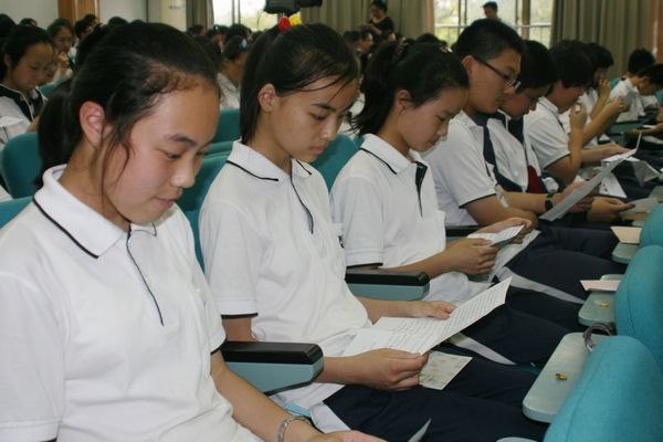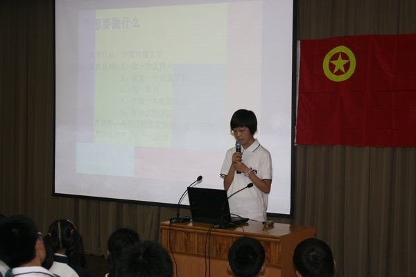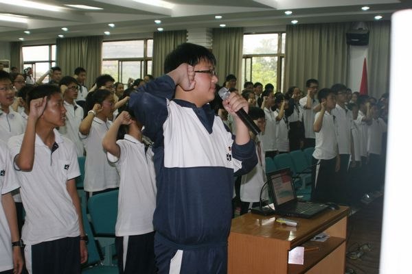 仪式上,最让人难以忘怀的是一个展示人生规划的环节。走上演讲台的两位同学从各个方面来向我们讲述他们各自的现状与未来的发展规划。那位男生理想远大,对自己的优势与不足分析得十分透彻。他想在将来成为一名银行家,为祖国出一份力。另一位女生则希望自己在将来能够考入“亚洲第一”大学——香港大学或者“美国常青藤联盟第一”大学——布朗大学。他们的讲述非常精彩,让我心潮澎湃。作为一名中学生就应该有理想、有抱负,“心有多大,舞台就有多大”这句话也一直激励着我。