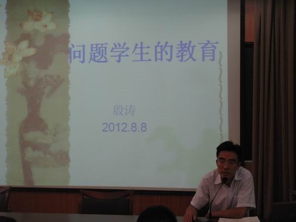 本次沙龙活动由教导处过炜宇副主任主持,整个活动主题鲜明,过程新颖。暑假期间,学校要求各位班主任结合自己的班主任工作和《问题学生诊疗手册》提前准备一个德育案例。沙龙活动首先分五个大组(见习班主任组、七年级组、八年级组、九年级组、河海中学组)交流讨论各自的教育案例,然后各组推荐两位老师在大会上交流,其中一位教师汇报点评所在大组的案例交流情况,另一位班主任将自己的案例作大会交流。紧接着,殷涛副校长做了《问题学生的教育》的专题讲座,从“问题学生,你从哪里来?”“问题学生,你往哪里去?”“问题学生,答案在哪里?”三个令人寻味的问题对目前教育中存在的客观问题做了独到的理解和剖析,并结合“水”这一普通事物在不同状态和不同外部环境下,表现出不同的张力和能量来寓意我们现在的不同层次的学生有着不同的可塑性,不管对哪个层次的孩子我们班主任都要去发现、去鼓励、去挖掘,因为每个生命个体拐弯时就会进入人生的另一个境界。这些教育理念,为班主任工作提供了许多有益的借鉴、启发与思考。